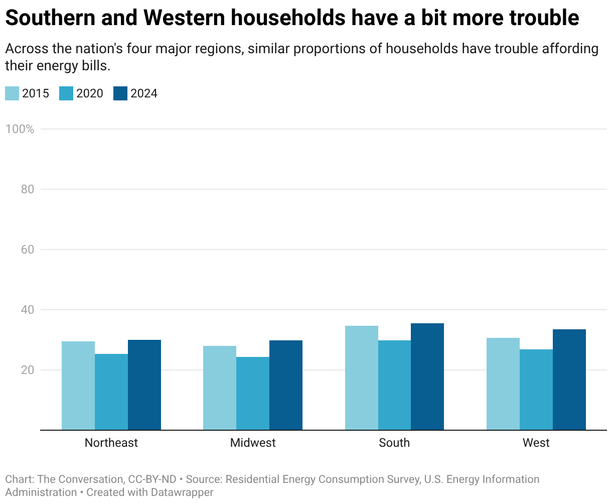 The 2024 data – high-quality and reliable as it is – is already behind in an escalating energy affordability crisis. Many more Americans are having trouble keeping the lights, heating and cooling on in recent years, and it’s a trend that may already be worse than what the most recent data shows.