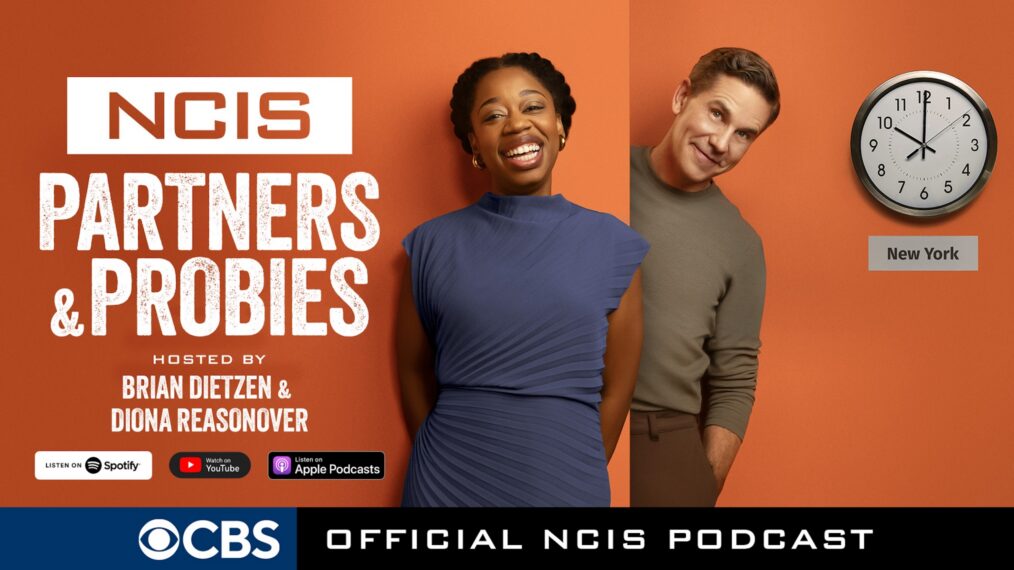TV Insider has learned exclusively that Brian Dietzen (who has played Dr. Jimmy Palmer since Season 1) and Diona Reasonover (who joined as forensic scientist Kasie Hines in Season 15) will be hosting CBS’ new NCIS: Partners & Probies podcast, which will premiere on Tuesday, March 3, the same day as the series’ midseason premiere (with the return of Emily Wickersham) — and with the 500th episode airing March 24. Episodes will be released weekly and be available wherever podcasts are available. They’ll also be available as videos on the show’s YouTube channel.