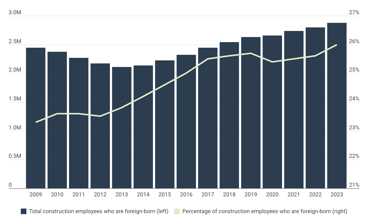 With nearly 2.9 million immigrants employed, the construction industry is increasingly made up of foreign-born workers
