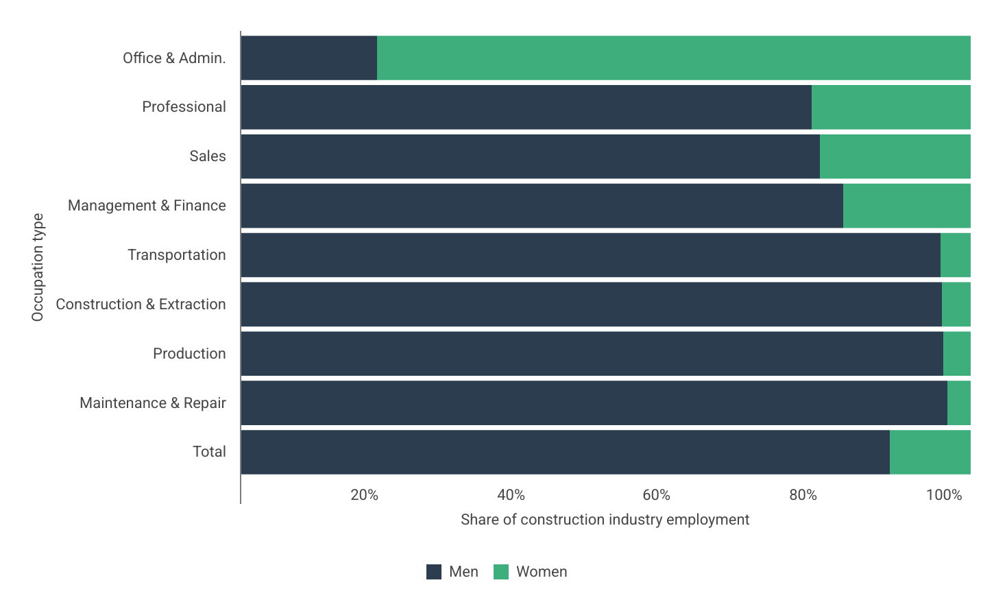 Nationwide, over 1.3 million women are employed in the construction sector, compared to more than 10 million men. The women who are employed in the sector are far more likely to work in office and administrative positions, while men dominate field-based roles.